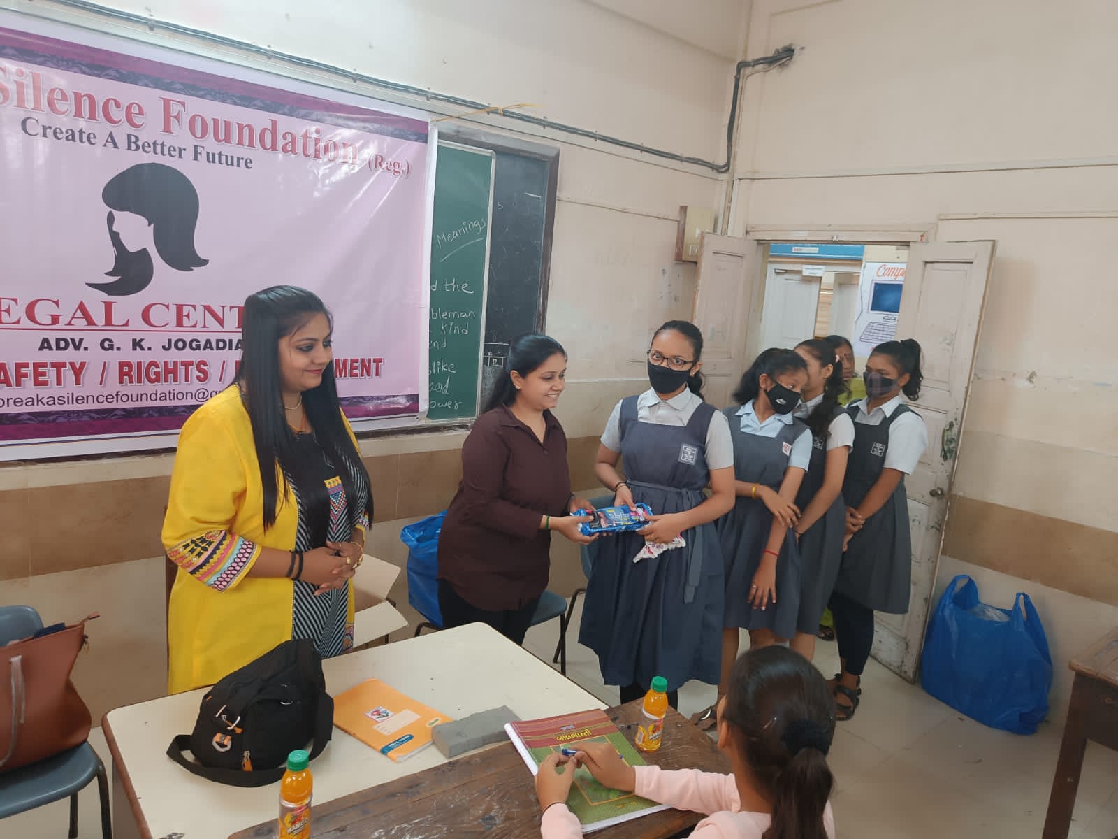 We Visit at Shri B P K Sahakari Vidhya Mandir School there we distribute Sanitary Napkin to 50 above younger girls and give lecture on Menstrual hygiene.